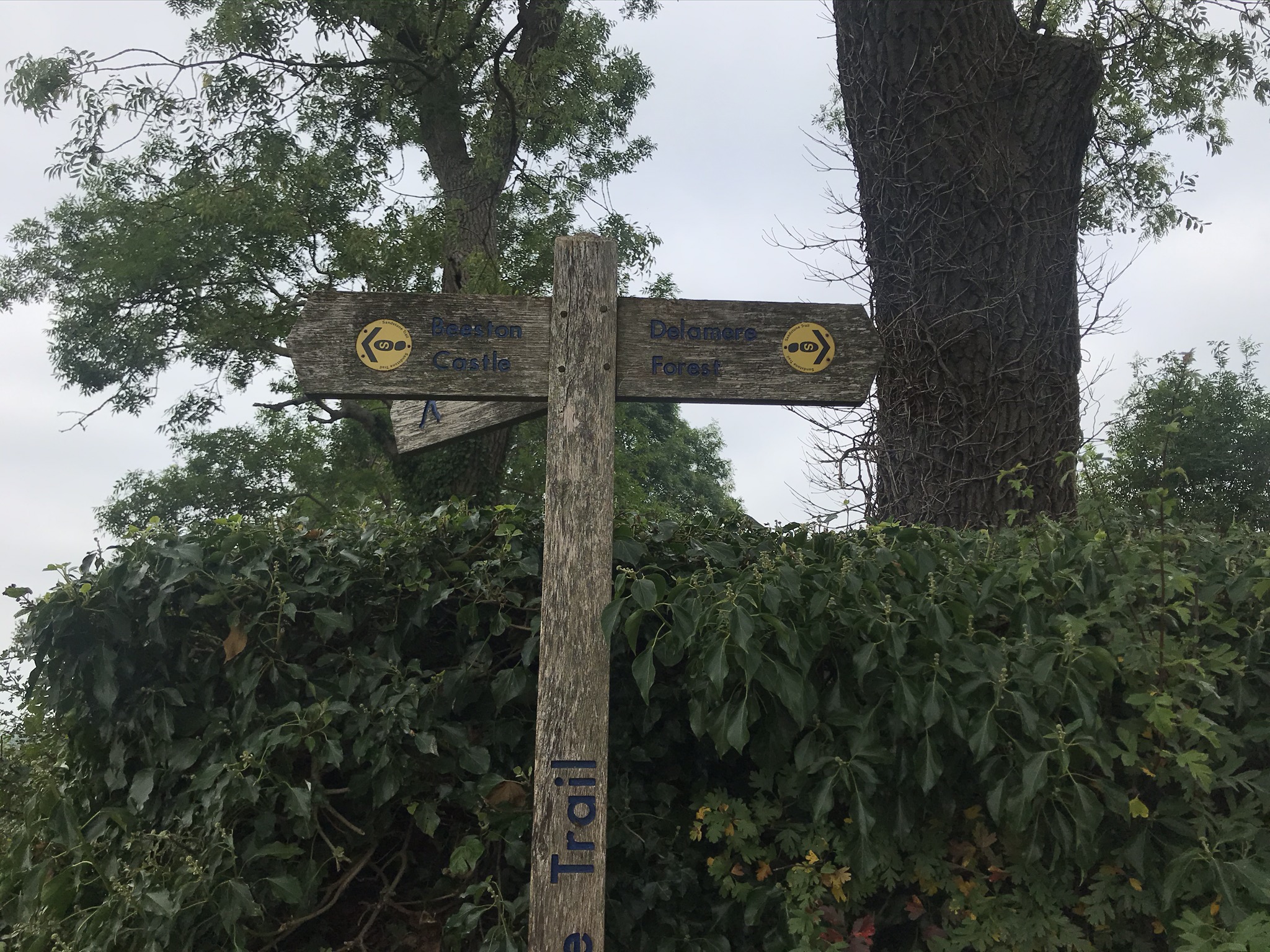 The Sandstone Trail. Its probably one of (if not the) most well-known long-distance path in Cheshire. It joins the towns of Frodsham in the north and Whitchurch in the south, 55km (or 54km on the OS route below) broadly following the sandstone ridge. Most years there are events to walk or run the whole route in a day, long before the Cheshire Challenge became a ‘thing’ I pondered walking the whole route. Early in the challenge the closeness of the Eddisbury Way, which runs almost parallel to the Sandstone Trail made for convenient and easy circular walks: 1, 5 and 22. After walking 55km on the relatively flat Wirral Circular Trail I wanted another big endurance challenge and even though it meant repeating sections, walking the Sandstone Trail in a day fitted the bill.